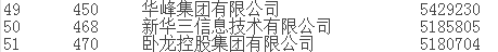从位次上看,前五名分别为国家电网、中国石化(600028)、中国石油(601857)、中国建筑(601668)、工商银行(601398),第六到十名分别是建设银行(601939)、农业银行(601288)、中国铁路、中国银行(601988)、中国铁建(601186)。
