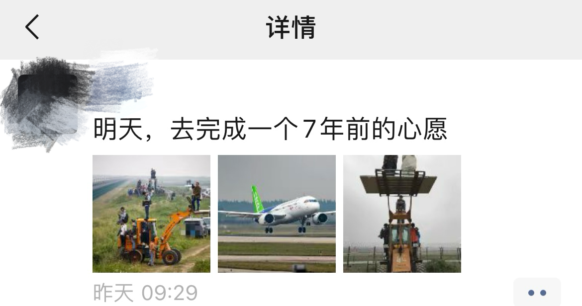 “明天,去完成一个7年前的心愿。”9月10日,杭州人冯健就发了一条朋友圈,配图是几张关于国产大飞机C919的照片。