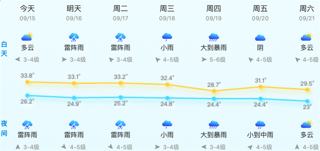 明天白天最高温度:31-33℃,
