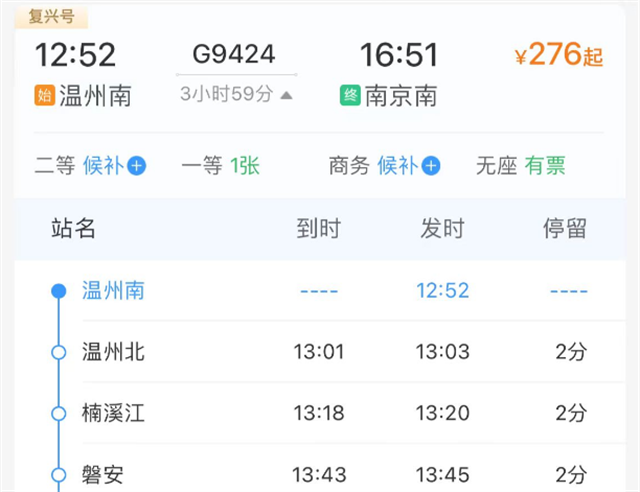 部分车次涉及温州北站、楠溪江站