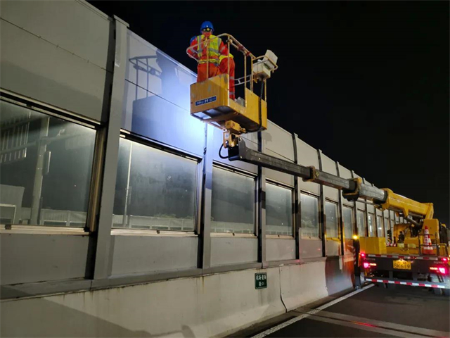 检查高架桥隔音屏加固情况。通讯员供图