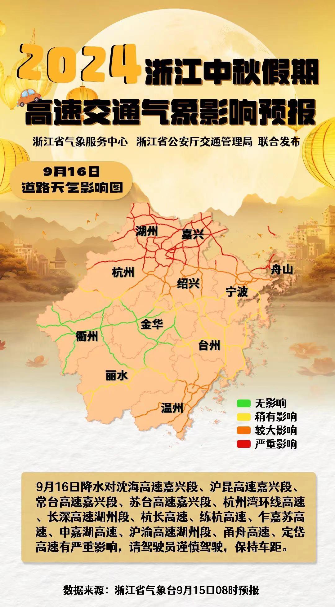 中秋当日,台风影响基本结束,浙江天气恢复平静,将是多云为主,残留的云系偶尔带来一些短时阵雨或雷雨。