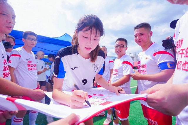 成立当天,这支“拼装”而成的球队举行了首场公益足球赛,对手是杭州师范大学女足,最终以3:1取胜。