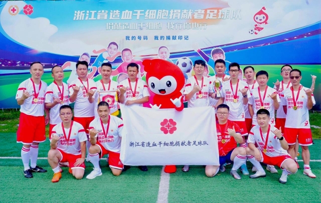 这是国内首支省级造血干细胞捐献者足球队。
