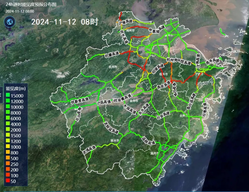 11月12日上午,浙江部分地区有大雾。图源:浙江省高速公路气象预报预警服务平台