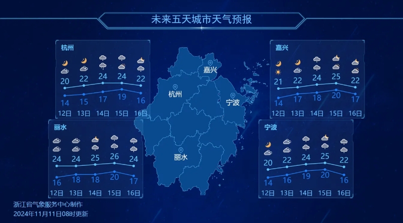 14日,浙江将迎近期气温高点。图源:浙江天气。