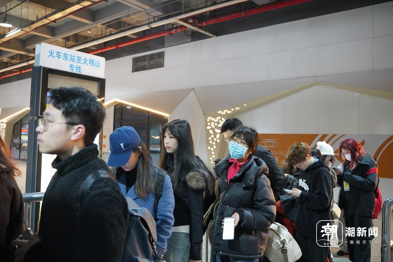 今天上午8点,记者赶到杭州东站西广场,现场已经有不少乘客在站台旁等待上车,其中不仅有刚放寒假的大学生,也有不少带着孩子来的“宝妈”。