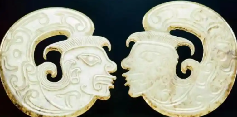 春秋时期黄君孟夫妇合葬墓出土的2500年前的一对青玉人首蛇身饰,其中一件耳佩圆环者为男性,另一件为女性,呈现了男女之间相依相偎的亲密状态。
