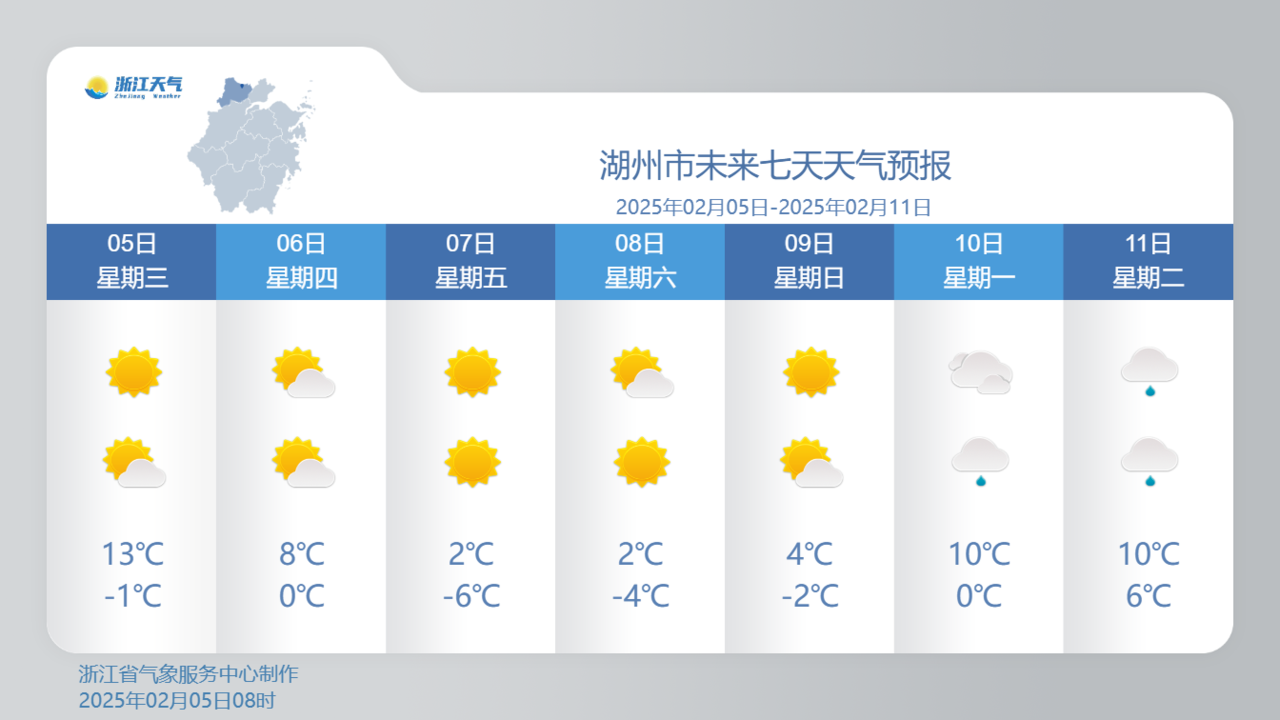 2月8~10日全省大部有冰冻天气,这次沿海的台州、温州都跑不了。8日当天,浙北大部地区最低气温会跌到-4℃以下,湖州最冷-6℃,连舟山的最低气温也会跌到-5℃。