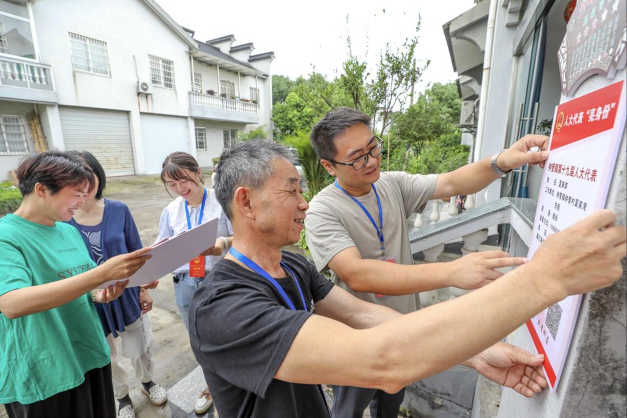 德清县钟管镇钟管村,人大代表在家门口悬挂亮身份工作牌。湖州人大供图