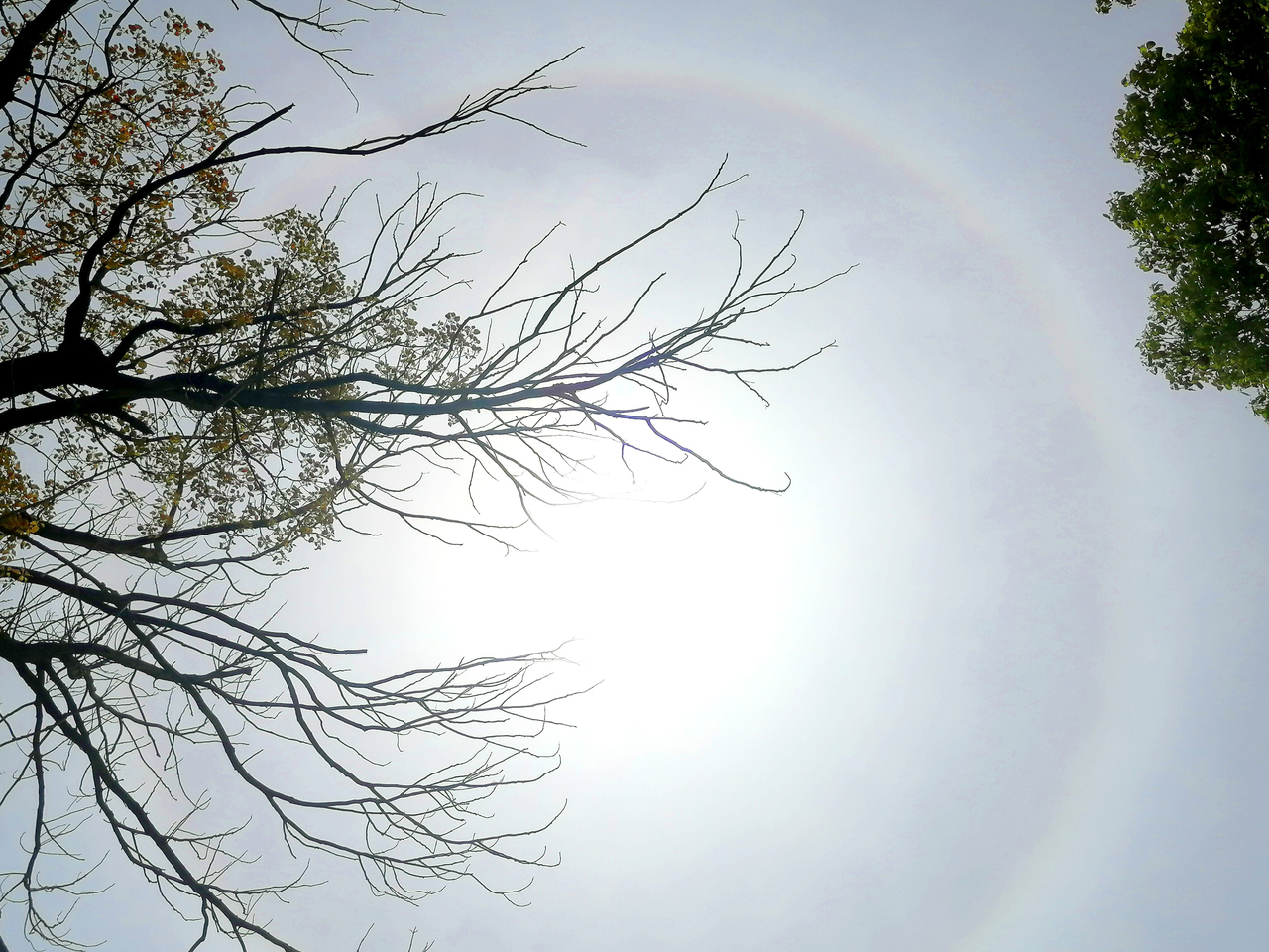 2025年4月9日中午在滨海镇人民政府旁边的公园里拍摄到的日晕奇观。