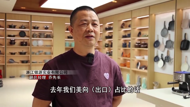 浙江锴源实业有限公司副总经理 乔先长:去年我们美向(出口)占比的话,美国市场应该在10%~15%。今年通过第一期的广交会,我们通过拓展其他的中东市场,包括一些欧洲市场,基本上填补在20%,相对来说对我们企业外贸的情形影响不是很大。
