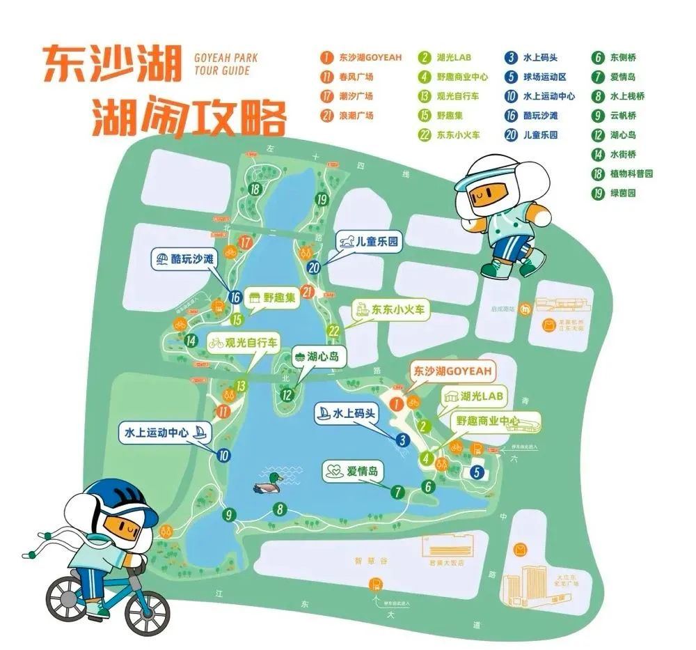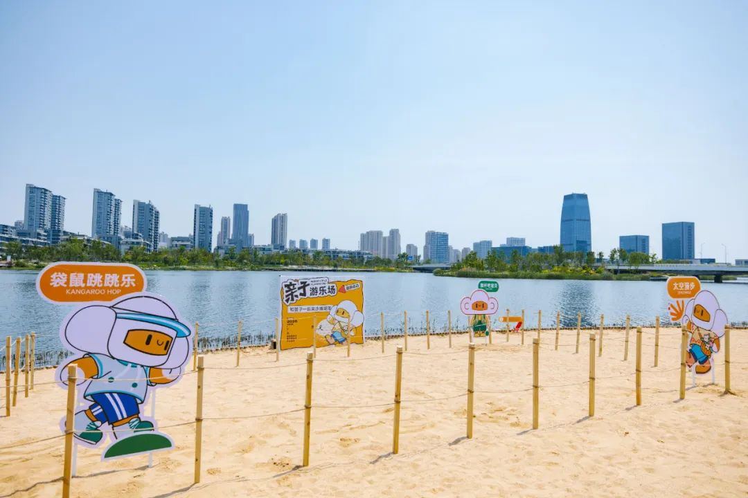 东沙湖公园位于钱塘区江海之城核心区,致力于打造城市野趣公园,配套了水上运动中心、野趣商业中心、运动球场等业态。公园将自然生态、城市功能、休闲娱乐等深度融合,创新运用雨水花园、旱溪湿地、透水铺装等低影响开发技术,成为市民亲近自然的“天然氧吧”。