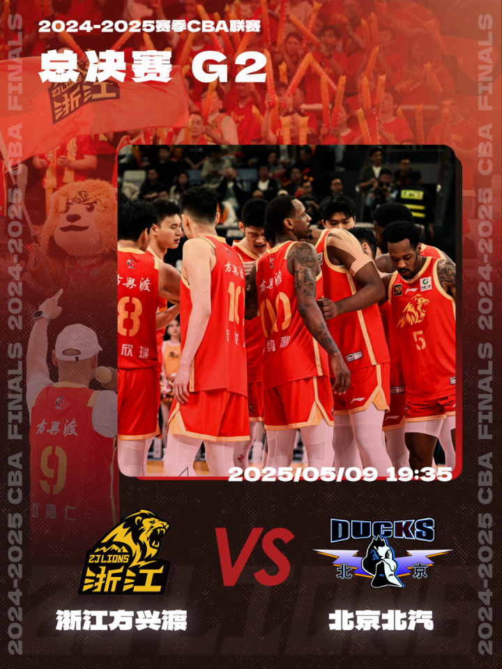 橙柿互动讯 5月9日晚,2024-2025赛季CBA联赛总决赛第二场比赛,将在黄龙体育中心体育馆继续进行。