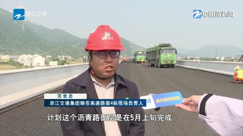 浙江交通集团瑞苍高速路面4标现场负责人 范世忠:计划这个沥青路面层是在5月上旬完成。