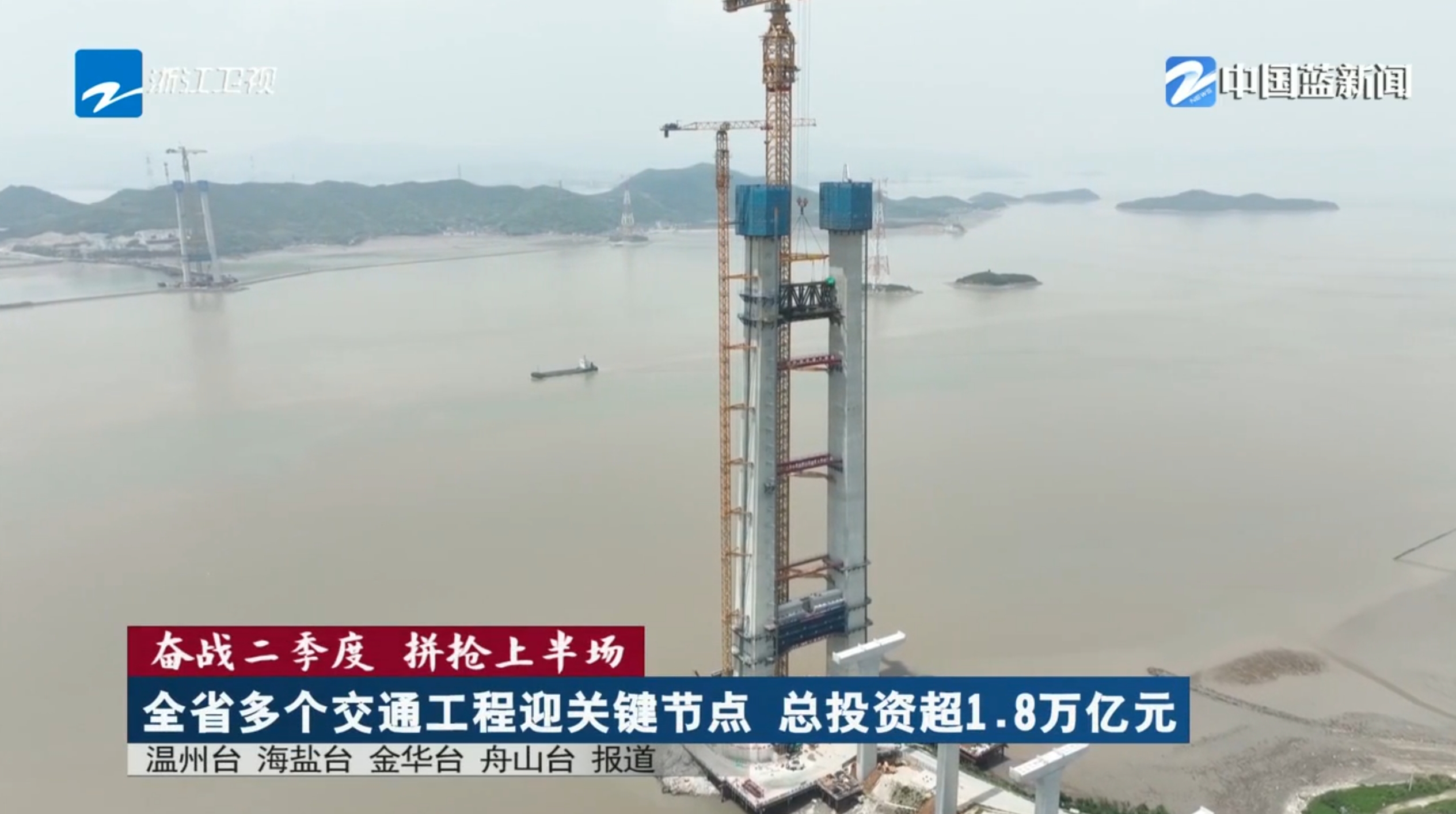 进入二季度,浙江多个交通重点工程项目进入施工关键期。在省“千项万亿”工程——宁波舟山港六横大桥二期工程双屿门特大桥施工现场,工人们正在进行混凝土浇筑作业。