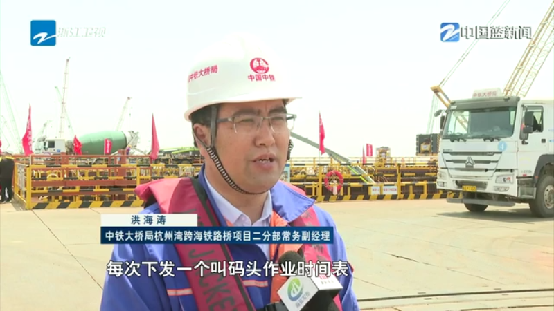 中铁大桥局杭州湾跨海铁路桥项目二分部常务副经理 洪海涛:根据数据库的信息,每次下发一个叫码头作业时间表,根据作业时间表来装货,实现零误差的装卸时间。