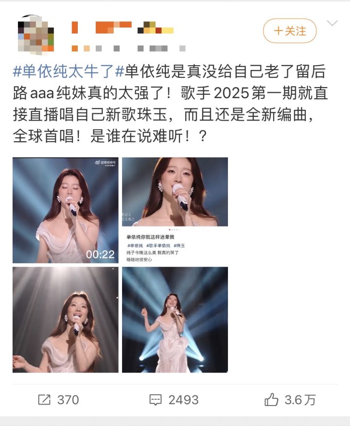 00后浙江女孩单依纯16日晚在《歌手2025》上的出色表现,更是让她直接“爆”上了热搜第一。最终,单依纯凭着全新编曲版的《珠玉》,拿下了“张榜赛”竞演第一。