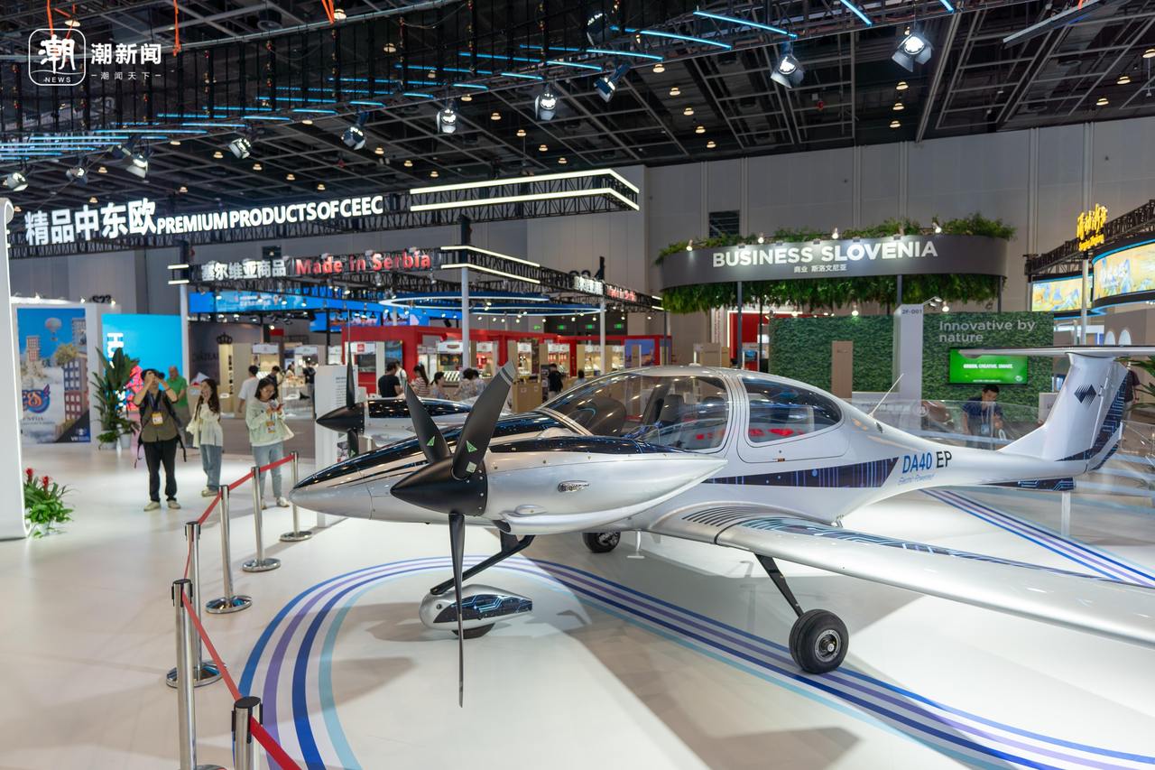 “数智中东欧”展区展出由奥地利钻石飞机公司研发的多发混合动力飞机。 记者 贺元凯 摄