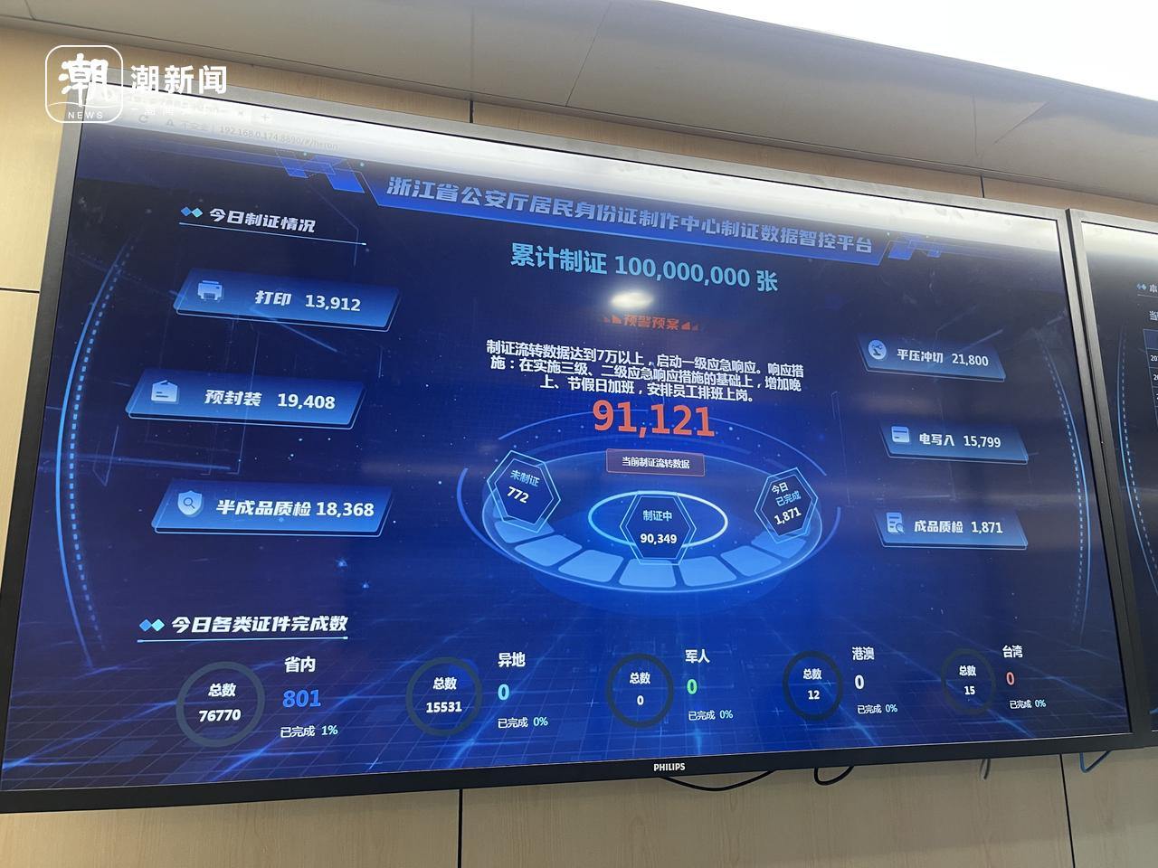 浙江第一亿张“二代证”。记者 王逸群 摄