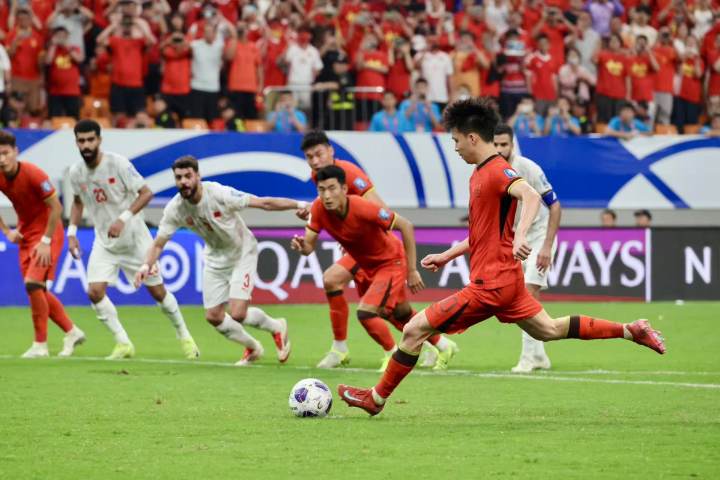 比赛前88分钟,场面略显沉闷,双方互有攻守,但比分一直为0比0。最后关头,王子铭制造点球,王钰栋沉稳将球罚进。当时全场几乎都屏住了呼吸,“心里还是有点紧张的,但是挺有信心的,想好了一边就发力。小时候的梦想就是能在国家队进球,没想到能在这么多球迷面前达成,很开心。”王钰栋说。
