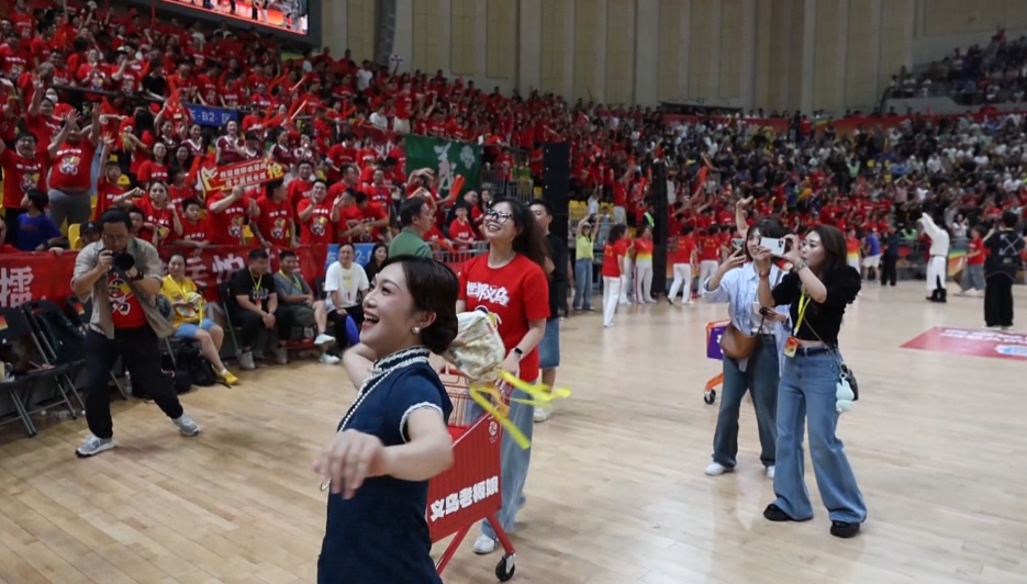 在金华,“‘浙BA’经济”从赛场上就动足了脑筋。暖场啦啦队,直接把两头乌的广告打到了赛场上。