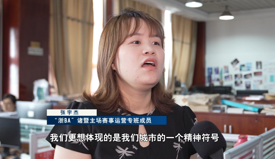 “浙BA”诸暨主场赛事运营专班成员 张宇杰:我们更想体现的是我们城市的一个精神符号,能够把草根品牌的一些励志故事和我们篮球赛场上面的拼搏精神,能够有一个很好的结合点。