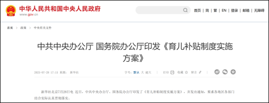 方正证券指出,本次育儿补贴制度落实了年初政府工作报告的要求,是从全国性的角度出发迈出促进生育的积极一步,未来视政策落实的具体效果,持续的鼓励政策或有望继续推出。