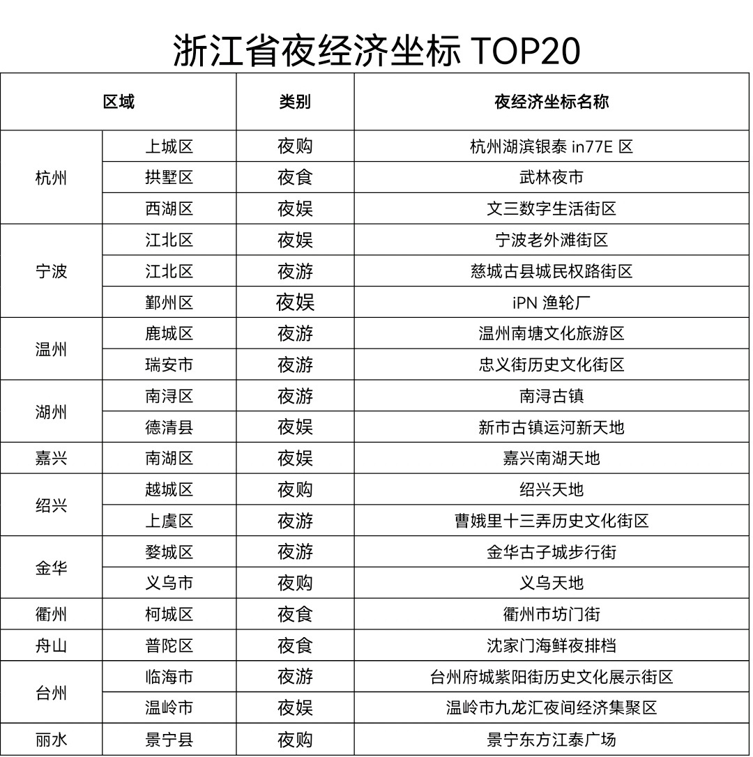 附:浙江省夜经济坐标TOP20