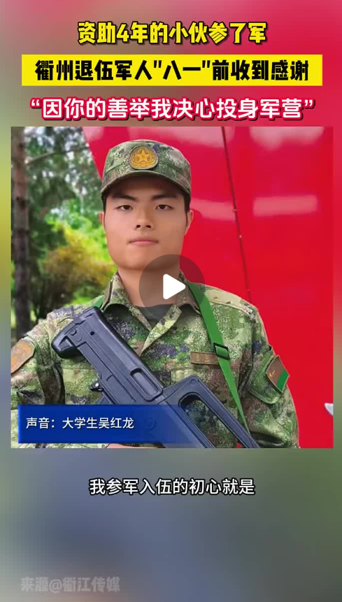 (原标题:八一前夕,衢州退伍军人收到曾经资助学生的参军喜报!)