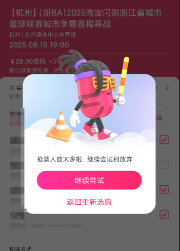 提前预填了身份信息,但被卡在了提交界面,一直提示“抢票人数太多啦,继续尝试别放弃”。