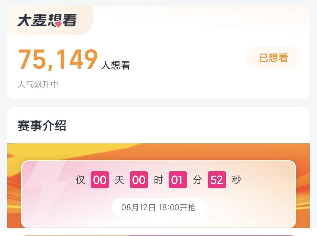 8月12日17点55分,距离开票不到5分钟,想看的人数已经突破75000人。