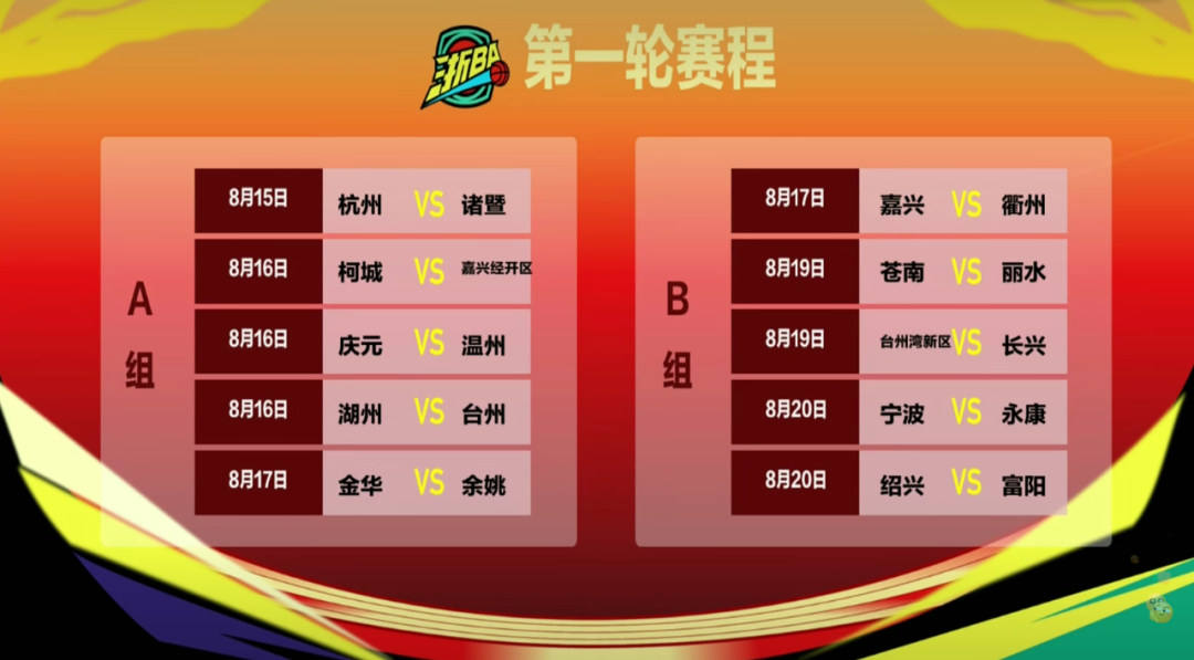 其中,8月16日柯城队对战嘉兴经开区队,庆元队对战温州队,湖州队对战台州队。8月17日金华队对战余姚队,嘉兴队对战衢州队,8月19日,苍南队对战丽水队,台州湾新区队对战长兴队,8月20日宁波队对战永康队,绍兴队对战富阳队。
