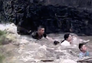 “快,抓牢树枝。”岸上的人朝江堤下大喊。