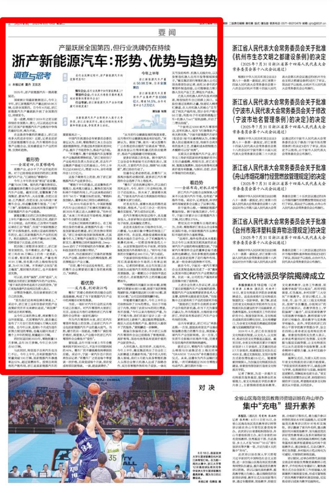 在这条竞争激烈的赛道上,浙江还有多大的进步空间?近期,记者走进浙江的新能源整车企业、汽车零部件企业等产业链企业,实地感受这个产业的形势、优势和趋势。