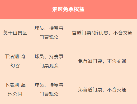 “浙BA”在诸暨举办主场赛事期间(赛事当天及前后各一天),游客凭浙BA票根还可免西施故里旅游区、五泄风景区、白塔湖国家湿地公园、斗岩风景区、汤江岩风景区、世界淡水珍珠博物馆、枫桥三贤馆、小天竺景区等诸暨市文旅集团下属国有景区的首道门票。