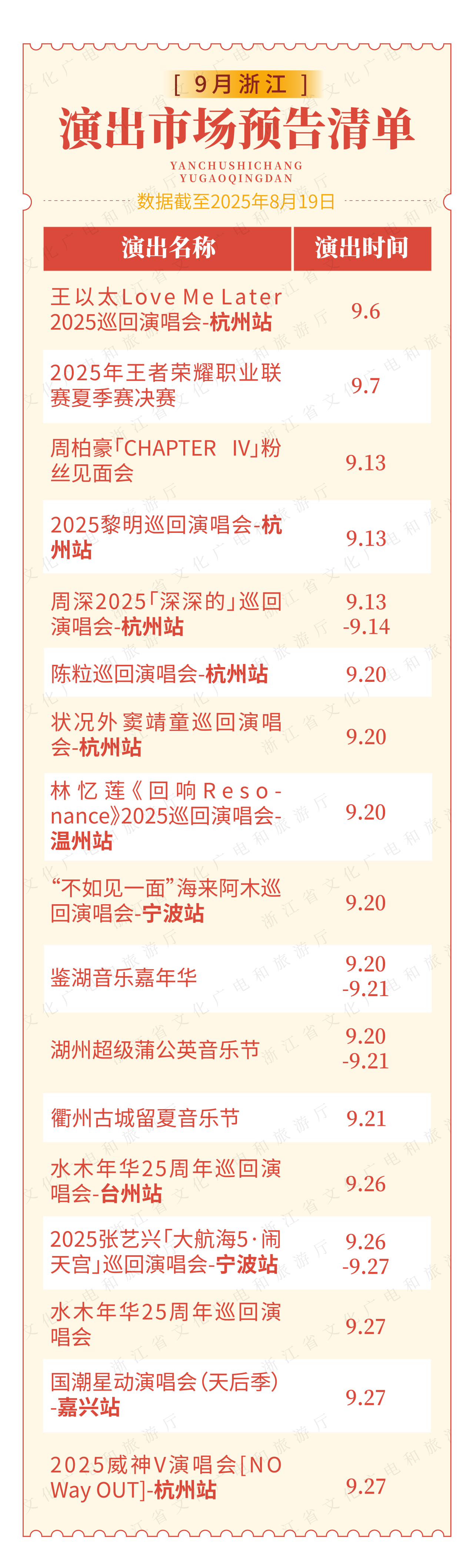 (原标题:官宣!九月份“浙”里的演出和赛事别错过)