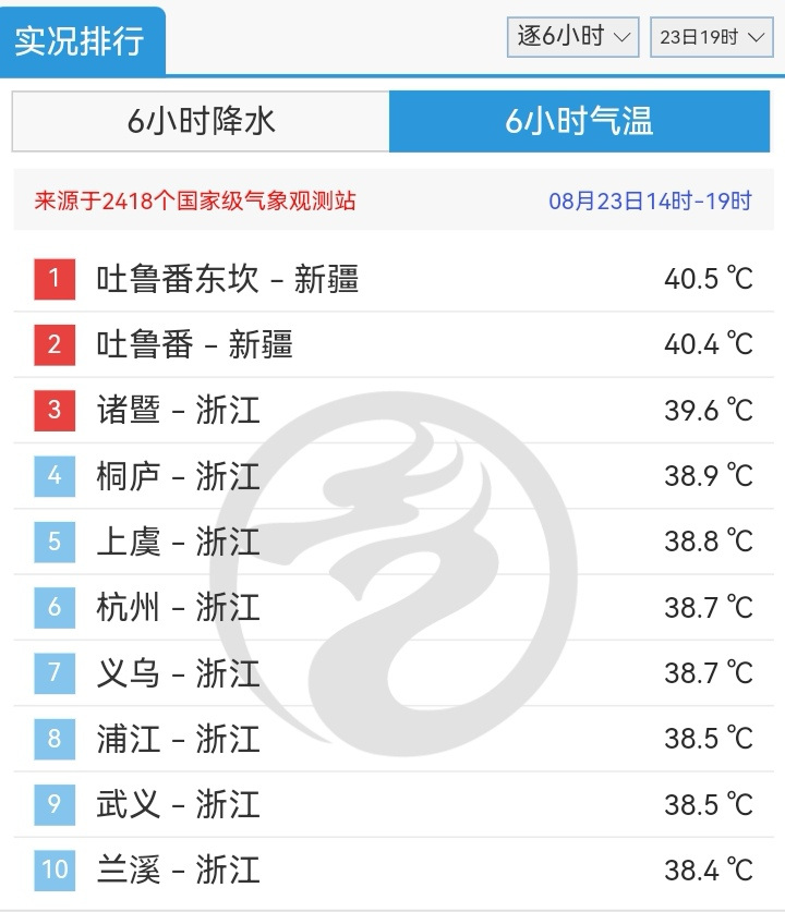从全国来看,新疆拿回来久违的头把交椅,浙江依然霸榜高温榜。