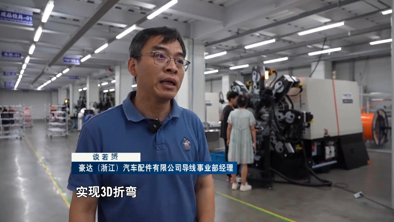 豪达(浙江)汽车配件有限公司导线事业部经理 谈若赟:我们现在的机器全部是靠数据程控,自动选择它折弯的角度,实现3D折弯。