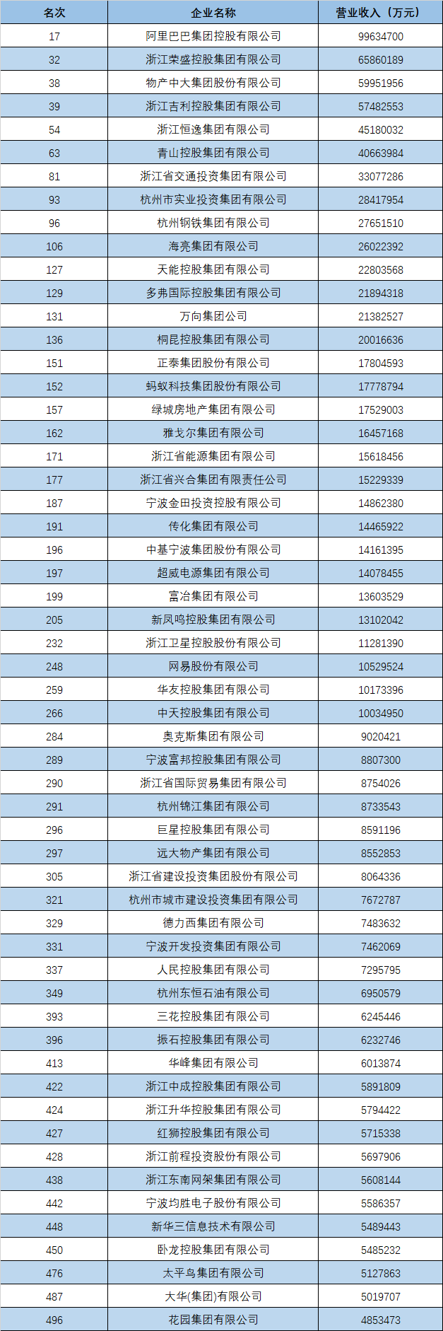 本期榜单,浙江共有56家企业入围榜单,比去年增加5家,数量居全国第二。阿里巴巴集团控股有限公司、浙江荣盛控股集团有限公司、浙江吉利控股集团有限公司、浙江恒逸集团有限公司、浙江省交通投资集团有限公司、杭州市实业投资集团有限公司、杭州钢铁集团有限公司等浙企位列前100位。