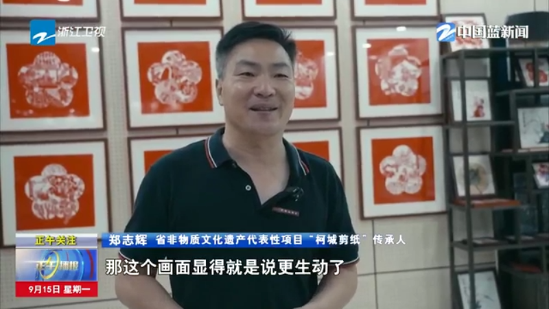 省非物质文化遗产代表性项目“柯城剪纸”传承人 郑志辉:展现出我们立春祭春时候的一个情节,寓意着风调雨顺、五谷丰登的意思,那这个画面显得就是说更生动了。