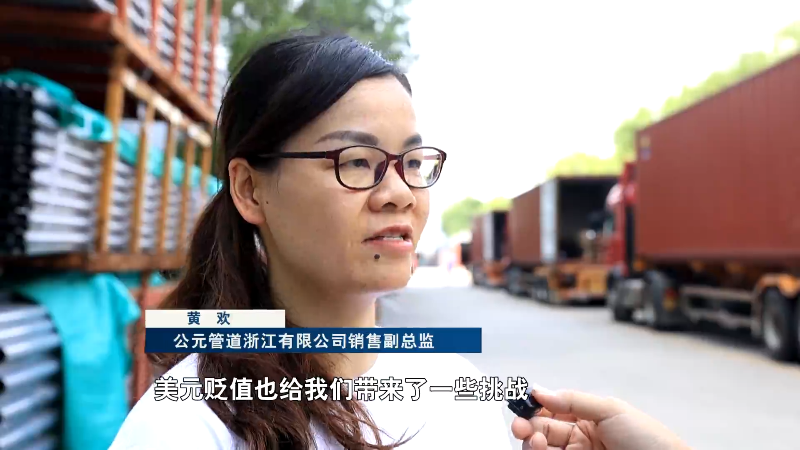 公元管道浙江有限公司销售副总监 黄欢:美元贬值也给我们带来了一些挑战,我们从美国市场赚取的美元收入,在兑换回人民币时会带来汇兑损失,压缩我们公司的利润。