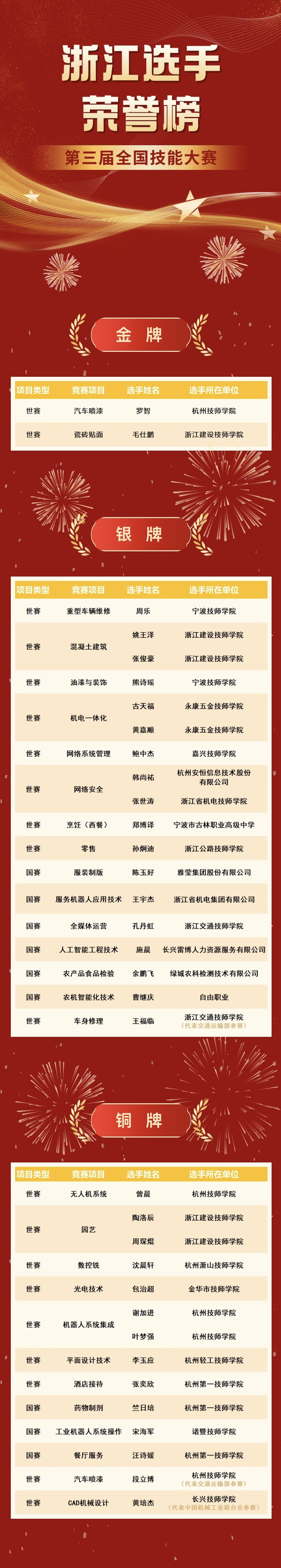 (原标题:祝贺!浙江技能健儿成绩来啦)