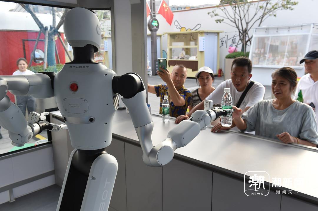 浙江积极推进“文化+科技”“文化+旅游”“文化+民生”,激发文化消费新动能,图为西湖景区里机器人上岗为游客售货。记者 潘海松 摄