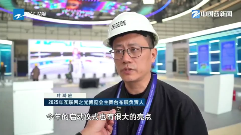 2025年互联网之光博览会主舞台布展负责人 叶琦应:今年的启动仪式也有很大的亮点,我们用了具身智能的机器人,跟机器人的签约装置结合,跟我们的开幕嘉宾一起共同来启动博览会。