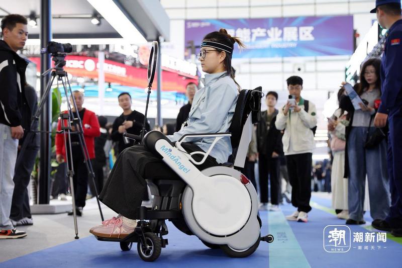 “3、2、1,开打!”一场具身机器人搏击赛激情上演,两个戴着拳击手套的机器人相对而立,一方迅捷左勾拳,另一方灵活回旋踢,金属碰撞声与阵阵惊呼喝彩声交织;不远处,两台脑控轮椅同样被围得水泄不通,使用者无需手柄和人力辅助,仅凭“意念”便能掌控轮椅自如前行……