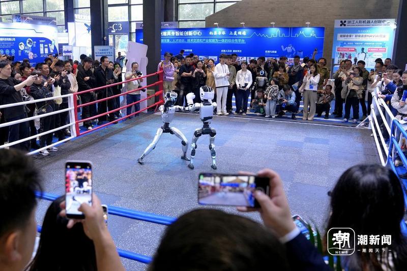 本届“互联网之光”博览会打造了“超级体验馆”,“赛BOT SHOW场”上演具身机器人搏击赛。记者 彭鹏 王志杰