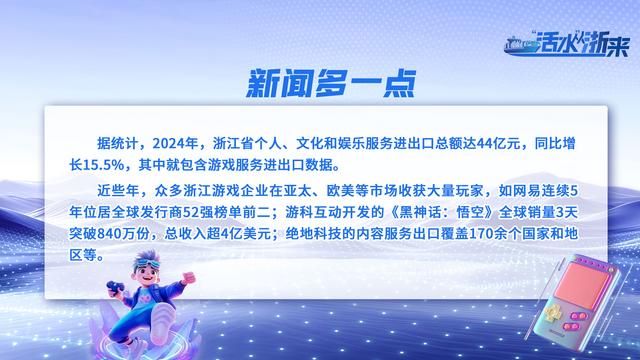 今年7月,浙江省商务厅等17部门联合印发的《关于支持游戏出海的若干措施》正式实施,提出20条举措推动游戏出海。这是浙江首次专门针对游戏出海发布系统性政策文件,也意味着国产游戏正迎来新一轮出海黄金期。