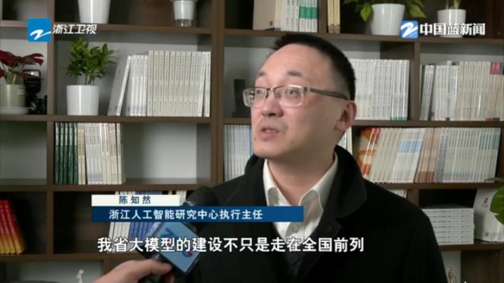 浙江人工智能研究中心执行主任 陈知然:我省大模型的建设不只是走在全国前列,更多的是可以说是代表我国参与全球竞争,由于模型的这个牵引,也推动了下游的一系列的产业的发展。