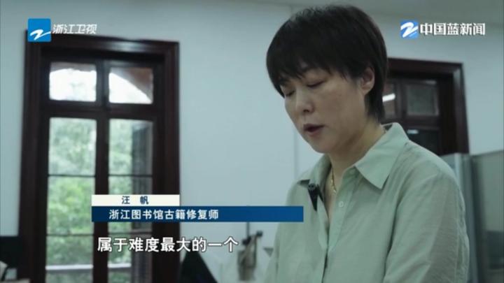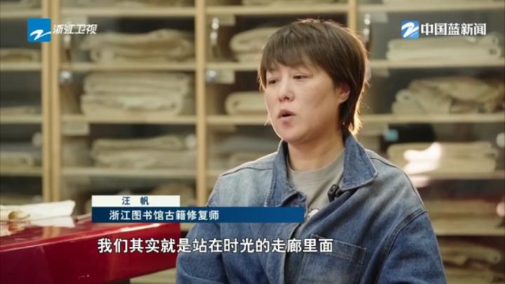 浙江图书馆古籍修复师 汪帆:我们其实就是站在时光的走廊里面,用自己的双手再护它一程,让它能够走得更远,让更多人能够看到它,还知道它的故事。